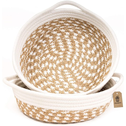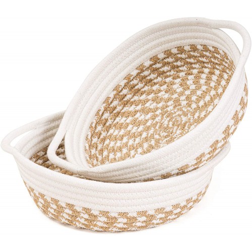 Made from quality cotton rope and jute, these two-tone storage baskets come in 2 sizes to meet various organizing needs in your living room, bedroom, laundry, nursery and especially fit in shelves with the rounded rectangle design. They can be easily moved indoors given the light weight and 2 built-in handles. Features:2 Pack of Large Storage Baskets....
