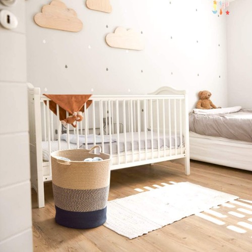 The gray woven laundry hamper nursery bin is made of 100% organic cotton rope (1cm, about 2/5") which is healthy and won't do harm to the skin. The laundry basket is perfect for nursery room. It is usually used for laundry room, living room or bedroom storage and matches well with your space.Main Features:- Basket with handles.- It works well as clothes...